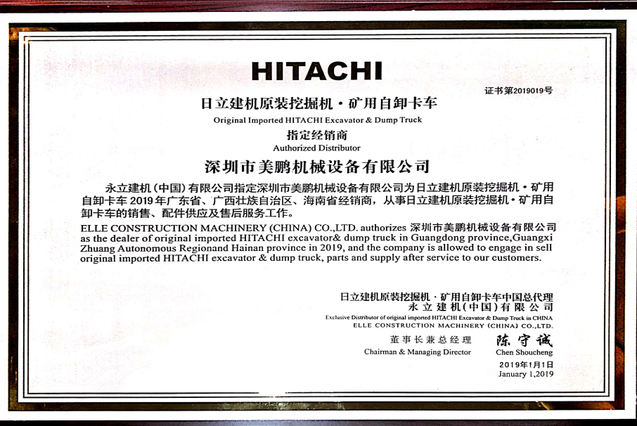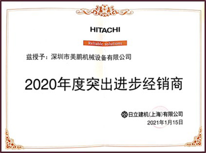 2020年被日立建机(上海)有限公司评为“突出进步经销商”