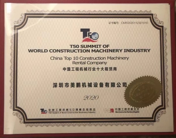 2020年荣获“中国工程机械行业十大租赁商”
