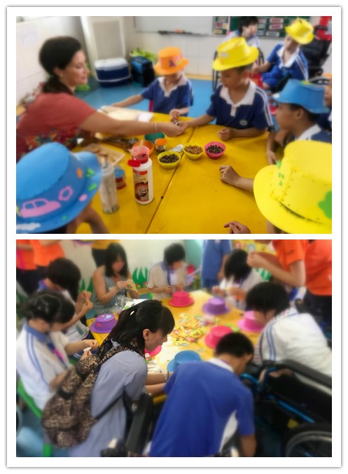 ↑志愿者们带领小朋友们做手工